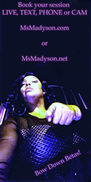 I'm a Professional Dominatrix based out of Las Vegas, NV that travels often so when you want to see Me book your appointment 48 hrs in advance with a small deposit that goes toward your full session tribute. I'm Mistress Amazon Goddess MsMadyson DeLaRough but you can call Me MsMadyson, I am 5'10" bare feet but rarely am I without heels. I have dark hair & hazel brown eyes. Born and raised on the west coast, I am an all-American girl, but I am of Scandinavian-Jamaican ethnicity. I am here to be worshipped, adored & obeyed. I have over a decade and a half years of experience under My corset & fully understand how to use it. I am very passionate about learning & grow with My BDSM/KINK/Fetish. I am a very real Sensual Sadist who understands how to use you to satisfy My needs. I take great pleasure in controlling every little thing about you plus I have a sincere fondness for real-time play. Always understand that I will direct you or your fantasy to please Me. I am available to do all types of sessions with all types of humans over the age of 21 so your gender, sexual orientation, or outward identity is not a factory in Me doing a session with you. I like those who are obedient, know their place, and use proper Dom etiquette when addressing Me! If you seek correction, punishment, or just a caring compassionate Woman who understands your fetish fantasy & kink then look no further. My playstyle ranges according to whom I am playing with because I play off the sub/slave/bottoms energy during the session. From Sweet as apple pie to as harsh as deep winter's night, I desire to bring your deep seed fantasies to the light of day within My world & have a great time doing it!Show more
